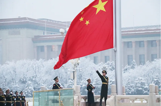國(guó)旗伴著雄壯的《義勇軍進(jìn)行曲》冉冉升起