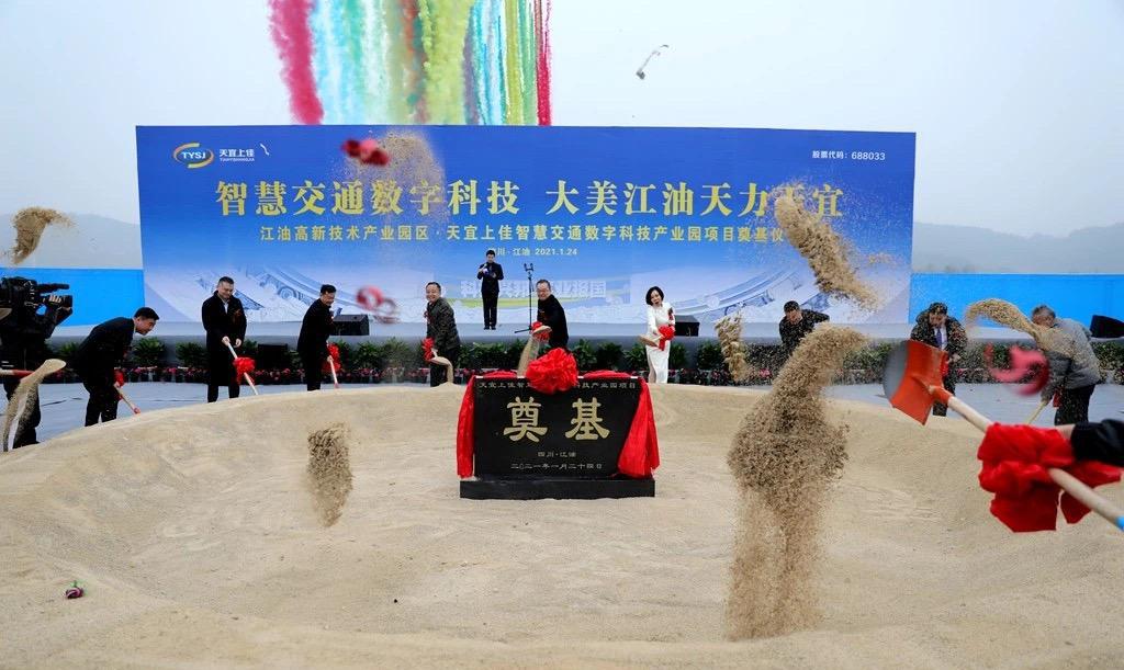 1月24日,在四川江油,天宜上佳智慧交通數(shù)字科技產(chǎn)業(yè)園項(xiàng)目奠基儀式盛大舉行。江油市委副書記、代市長曾建軍攜市領(lǐng)導(dǎo)胥洪、唐順江、何思文、楊保平、周世明、湯國平與天宜上佳高新材料股份有限公司董事長吳佩芳、常務(wù)副總經(jīng)理吳鵬、副總經(jīng)理夏菲、副總經(jīng)理釋加才讓、副總經(jīng)理侯玉勃、副總經(jīng)理劉帥等共同出席奠基儀式。江油市政府、江油高新技術(shù)產(chǎn)業(yè)園區(qū)管委會、高新區(qū)友鄰企業(yè)代表、項(xiàng)目施工企業(yè)代表與天宜上佳員工代表組成方隊(duì),歡聚于此、共襄盛舉。
