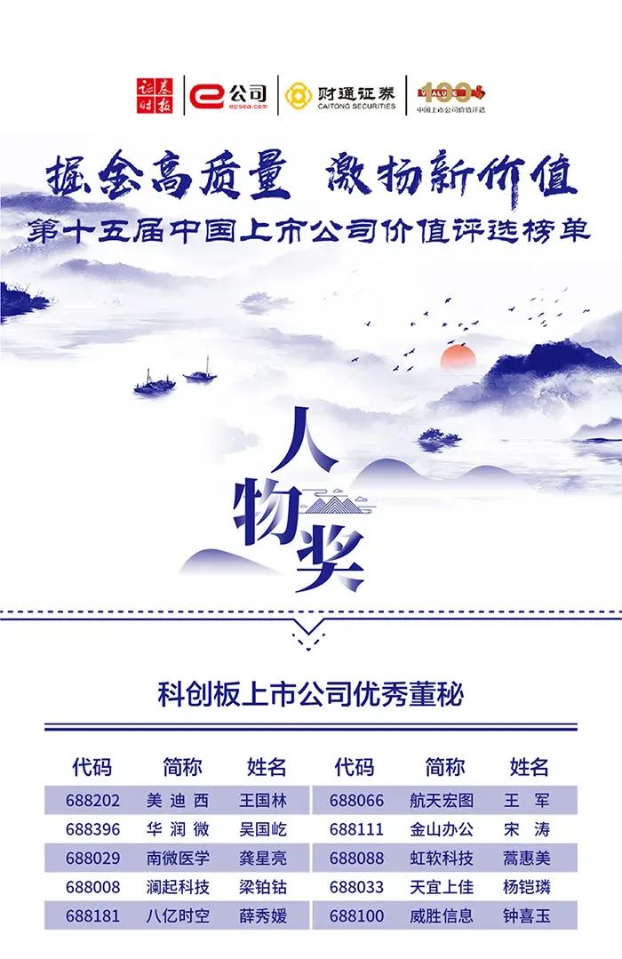 資本市場(chǎng)高質(zhì)量發(fā)展?jié)u入佳境,資金愈發(fā)以價(jià)值為錨,期望挖掘真正高含金量的標(biāo)的。在此背景下,2021年9月28日,由證券時(shí)報(bào)社主辦、財(cái)通證券特約協(xié)辦的“第十五屆中國上市公司價(jià)值評(píng)選”榜單揭曉。北京天宜上佳高新材料股份有限公司董事、董事會(huì)秘書、副總經(jīng)理?xiàng)铈z璘榮獲“科創(chuàng)板上市公司優(yōu)秀董秘”。