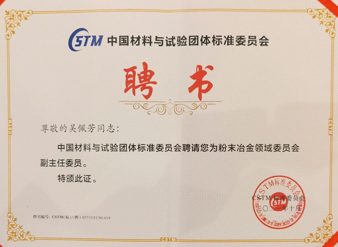 ▲吳佩芳受聘CSTM粉末冶金領(lǐng)域委員會副主任委員