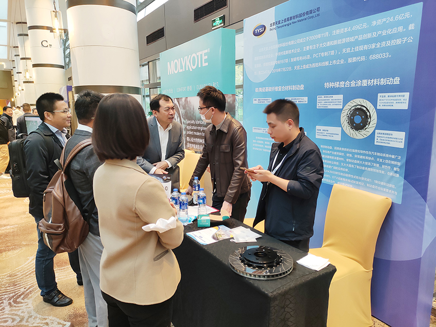 同時,天宜上佳現(xiàn)場展出的碳/陶制動盤與特種合金梯度涂覆制動盤吸引了眾多主機廠客戶駐足咨詢,客戶非常認(rèn)可公司布局的兩款產(chǎn)品并表示出了濃厚的興趣。