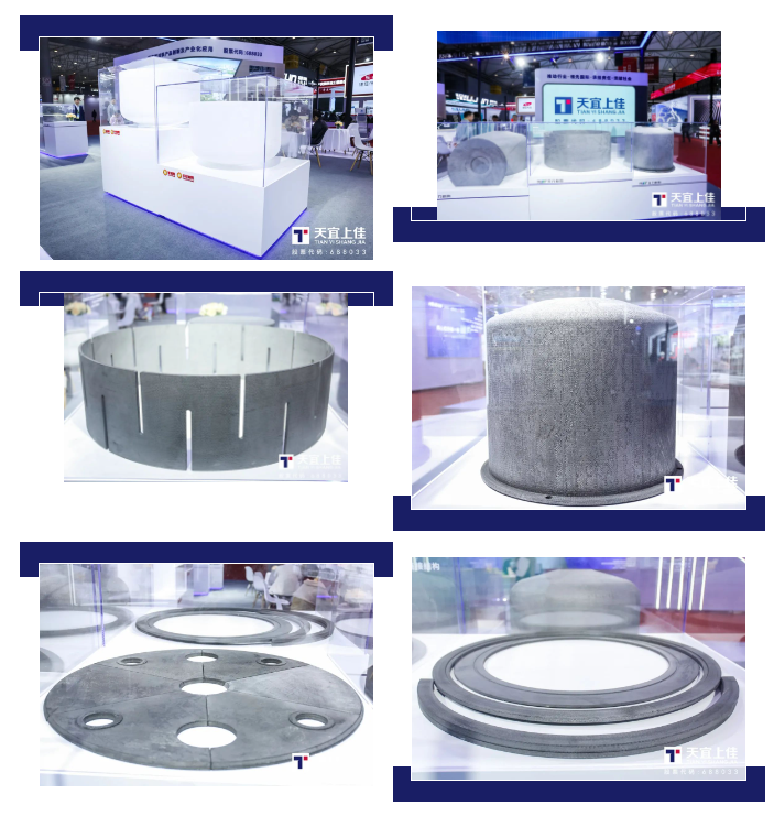 本屆盛會(huì),天宜上佳在4號(hào)館的核心位置重磅展出自主研發(fā)的光伏單晶拉制碳碳熱場(chǎng)部件、石英坩堝和鋰電負(fù)極熱場(chǎng)部件、熱工裝備用碳碳復(fù)合材料系列產(chǎn)品,充分展示了公司產(chǎn)品創(chuàng)新和產(chǎn)業(yè)化應(yīng)用的實(shí)力。