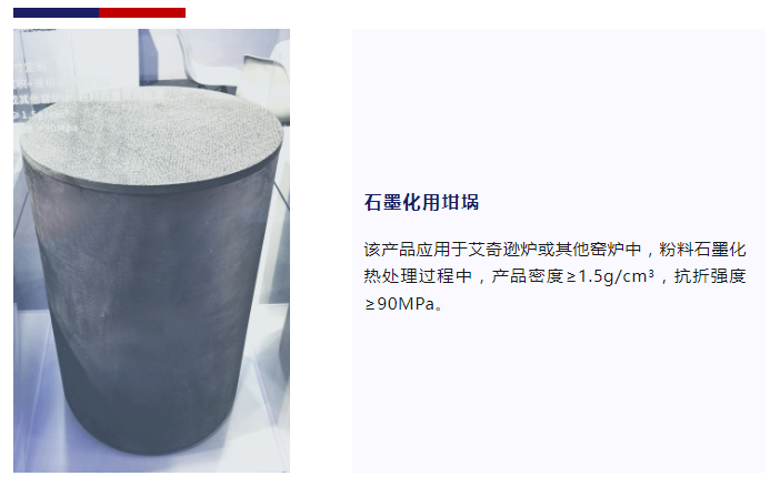 目前,公司已成功進(jìn)入負(fù)極材料產(chǎn)業(yè)領(lǐng)域,針對(duì)鋰電負(fù)極用熱工工裝進(jìn)行了系統(tǒng)性開(kāi)發(fā),完成材料端驗(yàn)證,鋰電負(fù)極熱場(chǎng)部件產(chǎn)品已在多家負(fù)極材料廠進(jìn)行試用,試用期性能穩(wěn)定,可達(dá)到客戶(hù)使用要求。公司自主研發(fā)新型產(chǎn)品石墨化用坩堝首次亮相展會(huì)現(xiàn)場(chǎng)。