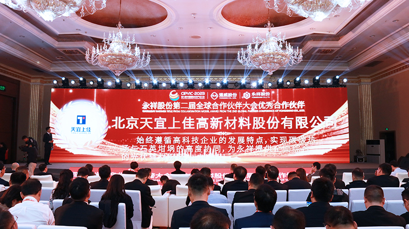 11月13日,在四川省光伏產(chǎn)業(yè)供需對(duì)接大會(huì)暨2023永祥股份第二屆全球合作伙伴大會(huì)上,北京天宜上佳高新材料股份有限公司被授予“優(yōu)秀合作伙伴”榮譽(yù)稱(chēng)號(hào)。天宜上佳副董事長(zhǎng)、總裁楊鎧璘代表公司上臺(tái)領(lǐng)獎(jiǎng)。