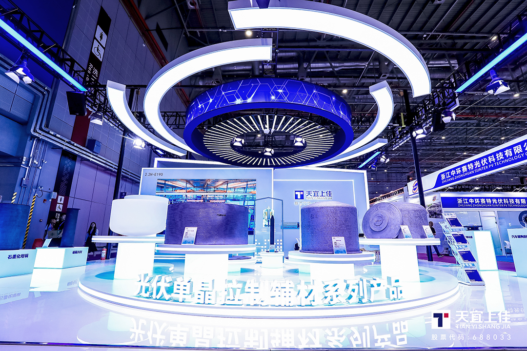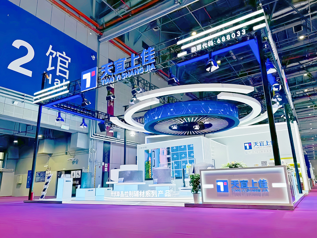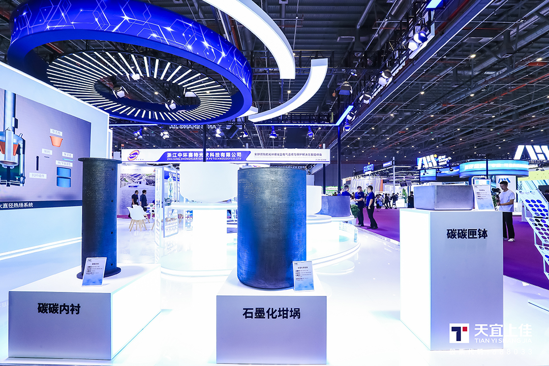 作為本次展會(huì)的參展商之一,天宜上佳展位以產(chǎn)品為核心進(jìn)行展示設(shè)計(jì),結(jié)合應(yīng)用場(chǎng)景,采用環(huán)島式分布,方便觀眾沉浸式體驗(yàn)光伏單晶拉制碳碳熱場(chǎng)系列產(chǎn)品、石英坩堝與鋰電負(fù)極熱場(chǎng)產(chǎn)品,近距離感受產(chǎn)品魅力,為展會(huì)增添一抹亮色。