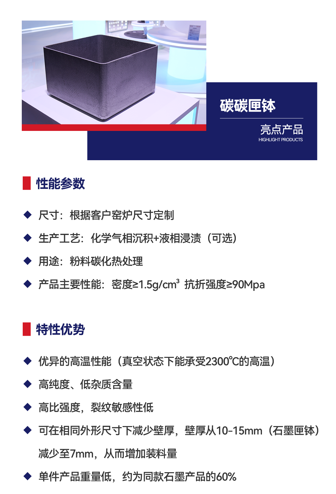 天宜上佳針對(duì)鋰電負(fù)極用熱工工裝進(jìn)行了系統(tǒng)性開發(fā),完成材料端驗(yàn)證,對(duì)不同碳纖維牌號(hào)、不同制備工藝、不同編織方式下碳碳復(fù)合材料的力學(xué)性能、導(dǎo)熱性能、電學(xué)性能進(jìn)行了表征,以匹配不同應(yīng)用環(huán)境。目前已開發(fā)成功系列產(chǎn)品并在多家頭部負(fù)極材料廠商實(shí)現(xiàn)供貨,部分客戶已通過樣件試用進(jìn)入中試階段,實(shí)現(xiàn)產(chǎn)品壁厚減薄、裝料量提升15%以上。